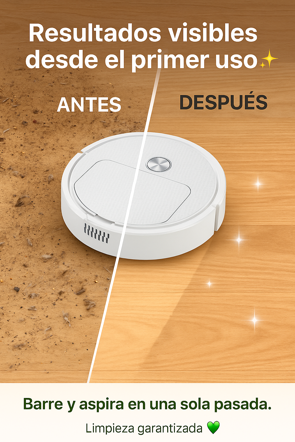 📏 Ideal para espacios pequeños o grandes: Gracias a su tamaño compacto y su sistema de navegación eficiente, puede limpiar desde departamentos pequeños hasta casas amplias, llegando a rincones difíciles y debajo de los muebles.