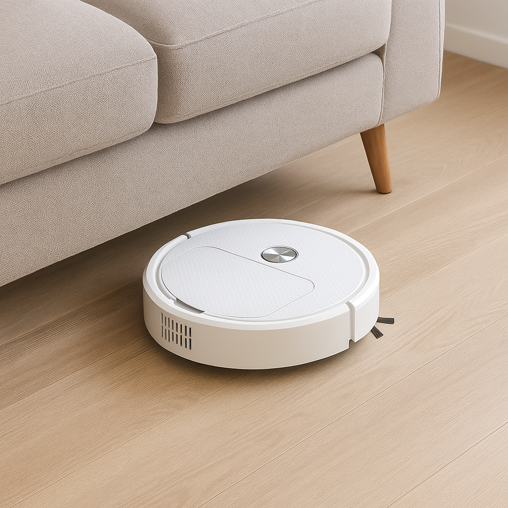 La Aspiradora Robot 2 en 1 tiene un formato delgado (6 cm de altura) que le permite limpiar debajo de sofás, camas o muebles sin atascarse.