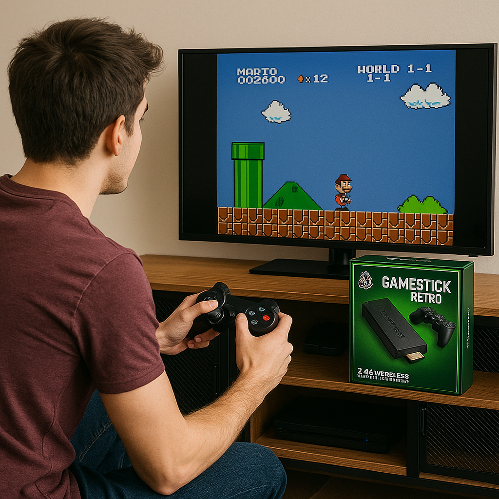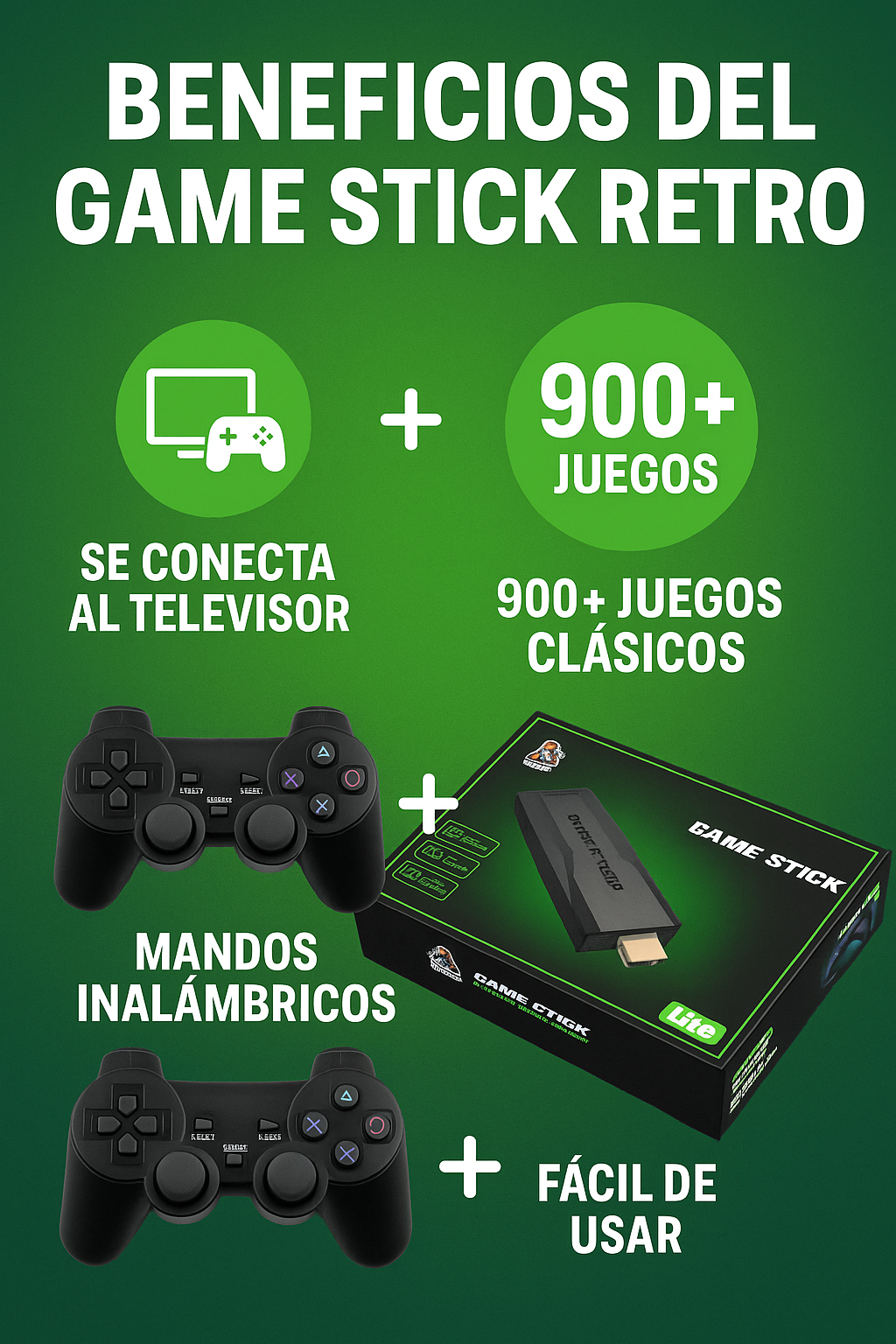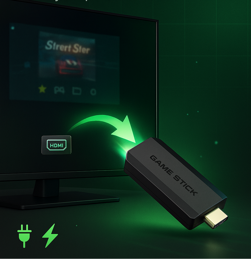 Conecta Game Stick Pro al puerto HDMI de tu TV, enciéndelo, selecciona un juego y comienza a disfrutar.