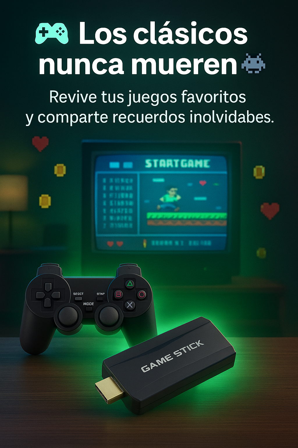 Miles de juegos clásicos en un solo dispositivo. Inspirado en las consolas originales que marcaron generaciones.