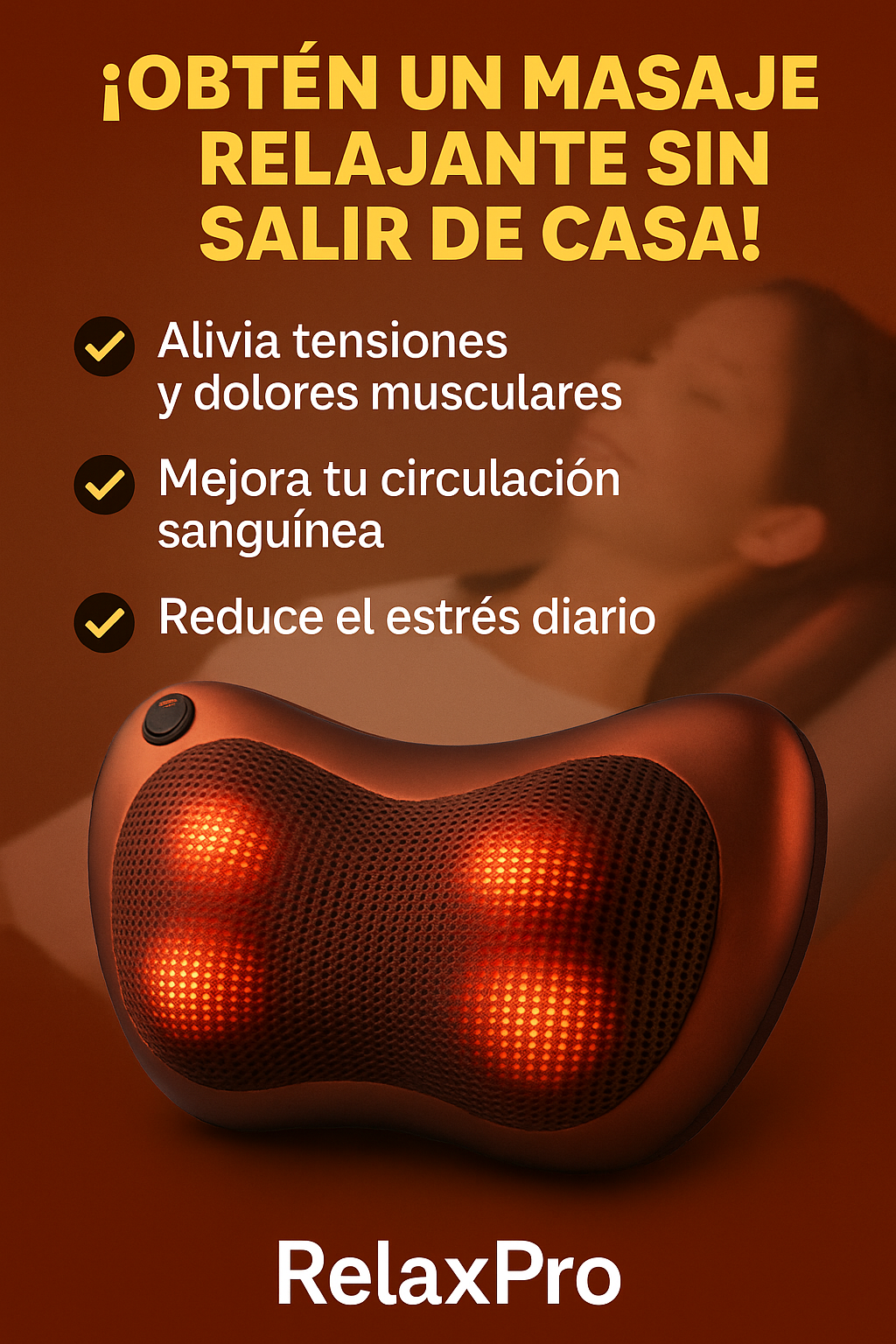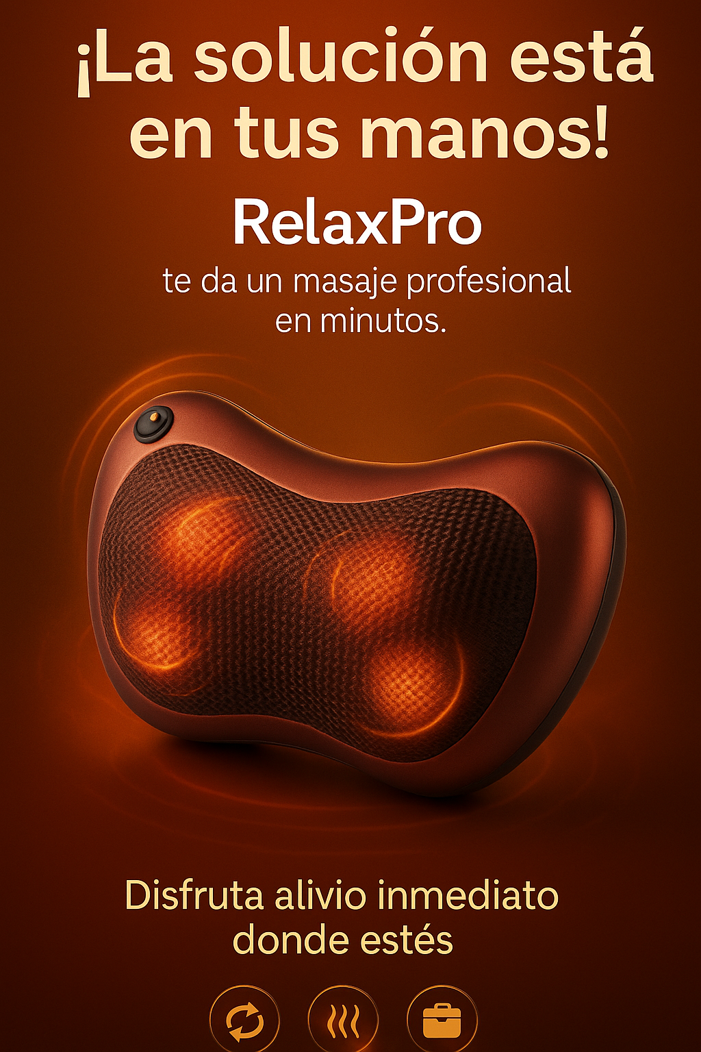 Convierte tu hogar en tu propio centro de relajación. RelaxPro ofrece un masaje profundo tipo shiatsu que libera la tensión acumulada en cuello, hombros y espalda, mejorando la circulación y el bienestar general.